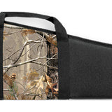 FEATURES-Black with black trim-APHD camo panel between handles-48" scoped riflecase-2 1/4" total soft padding-Full-length zipper with pull-Durable, heavy-dutyNylon water-resistant outer shell-Brushed Tricot, soft scratch-resistant inner lining-Zippered accessory pocket*Case measurements are external dimensions. For best fit, deduct 2".